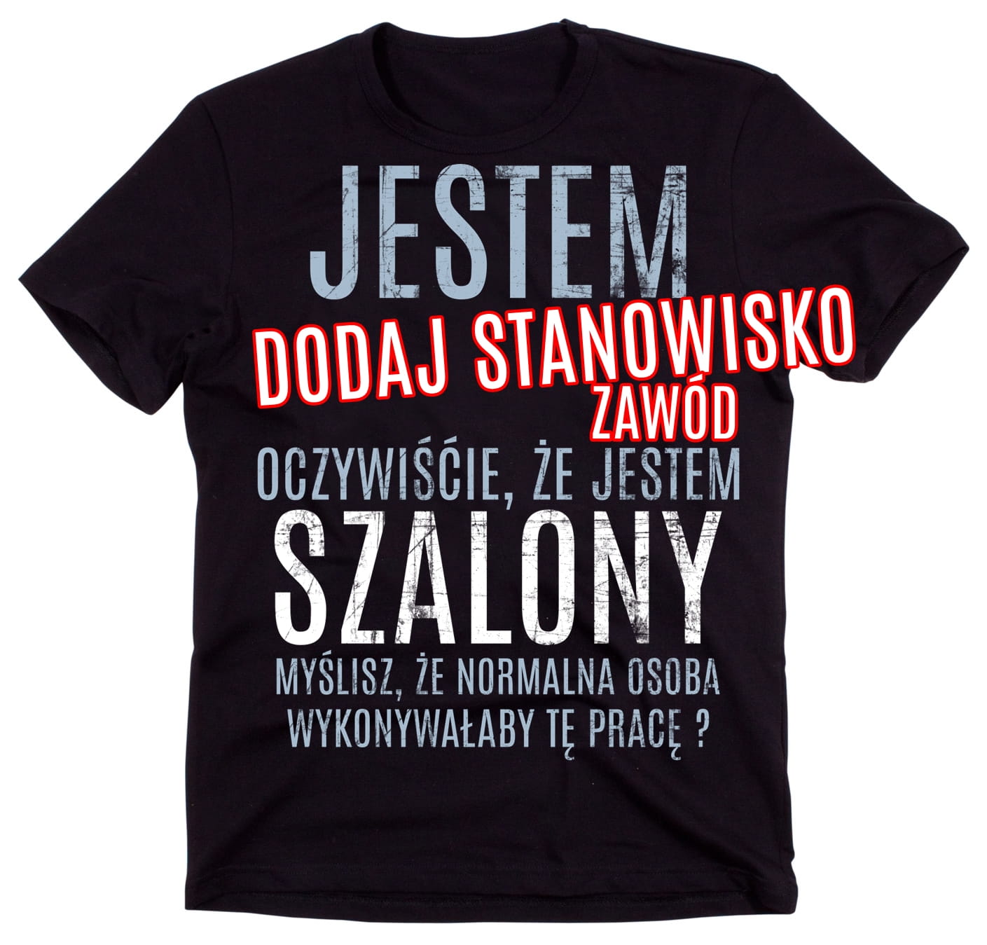 koszulki dla kolegów z pracy - JESTEM SZALONY DODAJ STANOWISKO PRACY