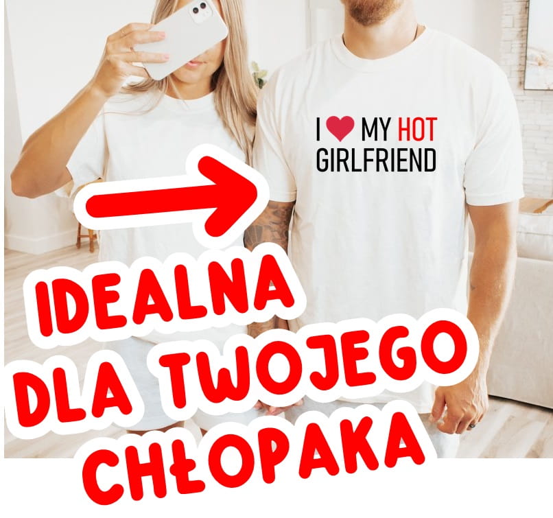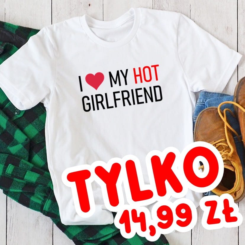 BIAŁA Koszulka dla chłopaka na walentynki I LOVE MY HOT GIRLFRIEND