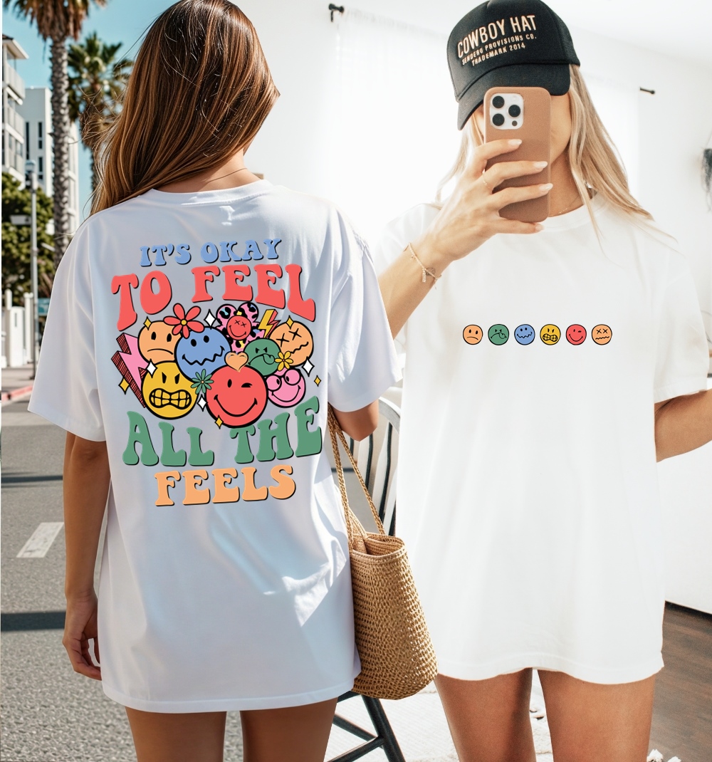 Biała damska koszulka OVERSIZE z fajnym nadrukiem