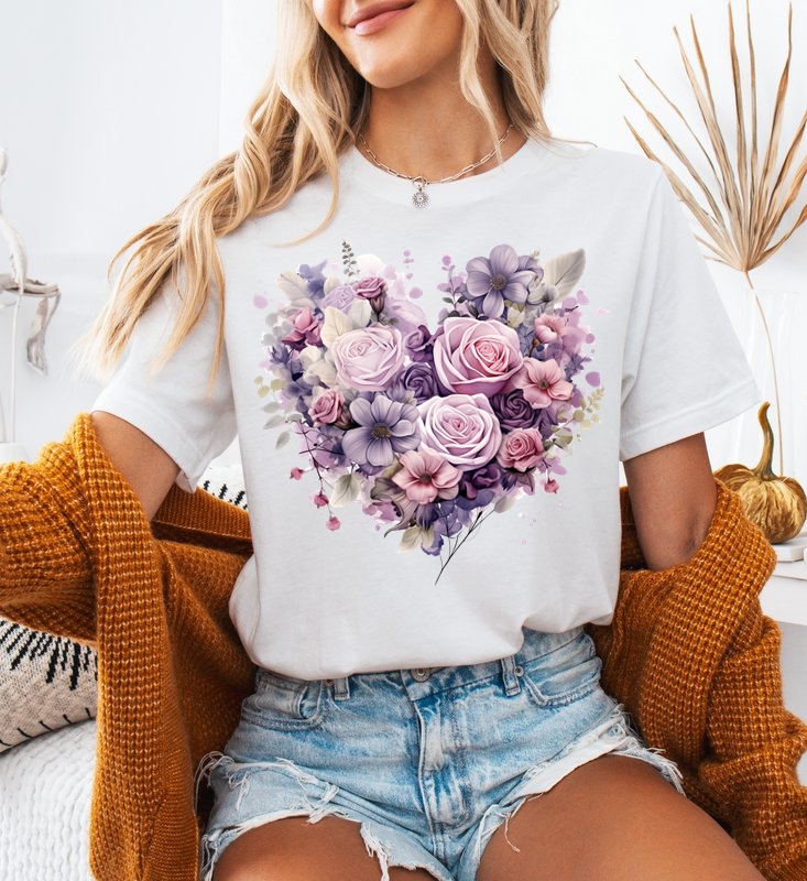 Biała damska koszulka z sercem z kwiatów - serce34