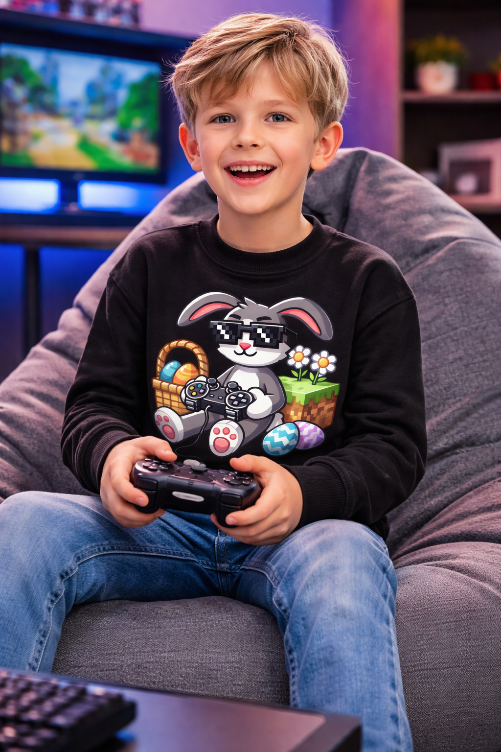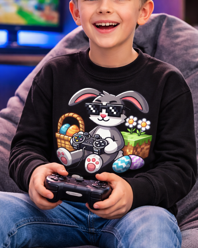 Bluza dla dziecka na Wielkanoc z zającem grającym na padzie