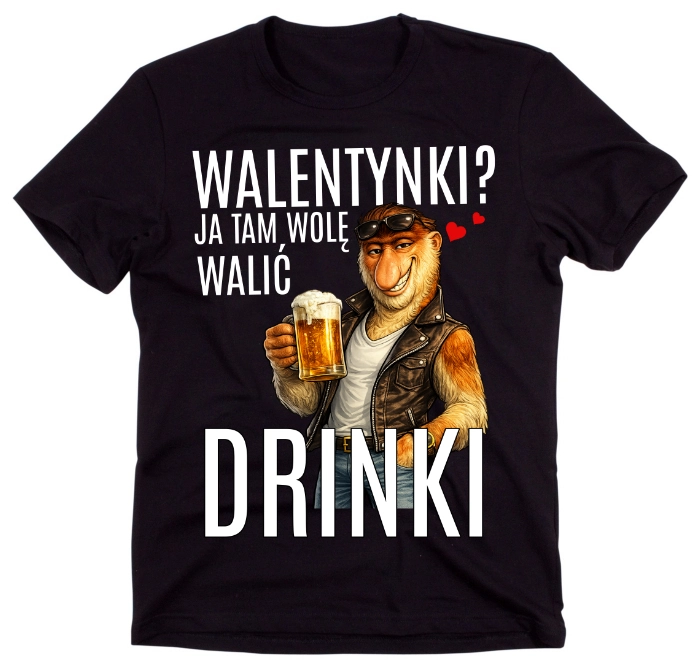 CZARNA KOSZULKA ''WALENTYNKI?JA TAM WOLĘ WALIĆ DRINKI''