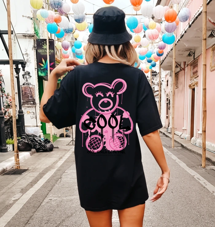 Czarna koszulka OVERSIZE damska z nadrukiem z tyłu - wzór misiek34