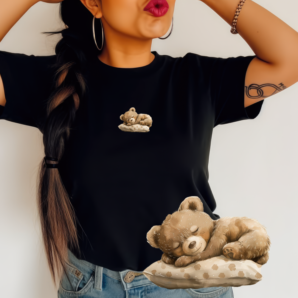 Czarna Koszulka damska z nadrukiem misia