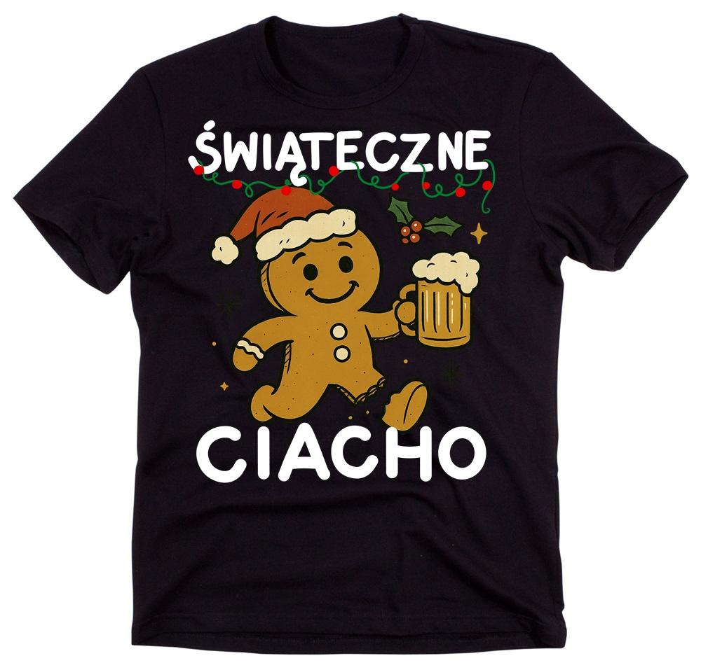 Czarna męska koszulka z Piernikiem - wesołych świąt