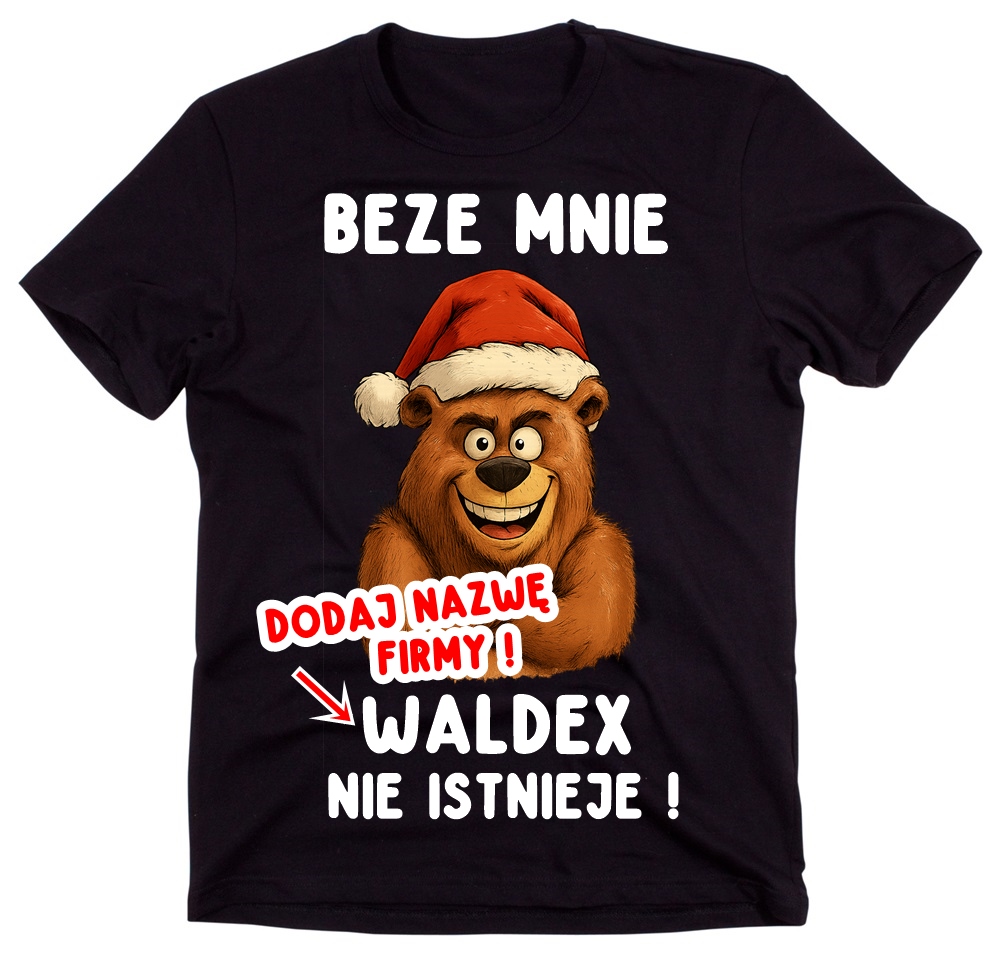 Koszulka „Beze mnie [NAZWA FIRMY] nie istnieje” – idealny prezent na Mikołajki dla kolegi z pracy