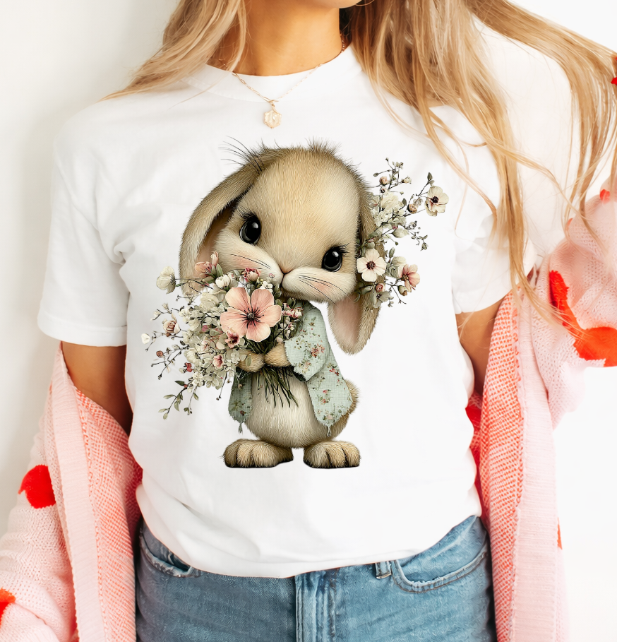 DAMSKA KOSZULKA Z ZAJĄCZKIEM Z KWIATAMI