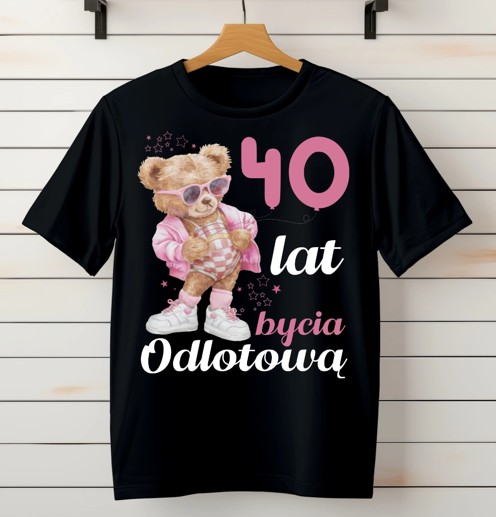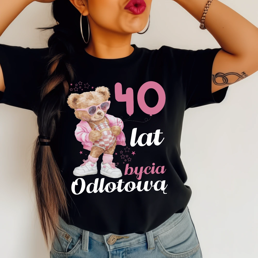 Na przodzie znajduje się wyrazisty nadruk "40lat bycia odlotową", który podkreśla energię i wyjątkowość jubilatki. To świetny pomysł na prezent, który nie tylko wywoła uśmiech, ale stanie się także świetną pamiątką z tej okrągłej rocznicy.
