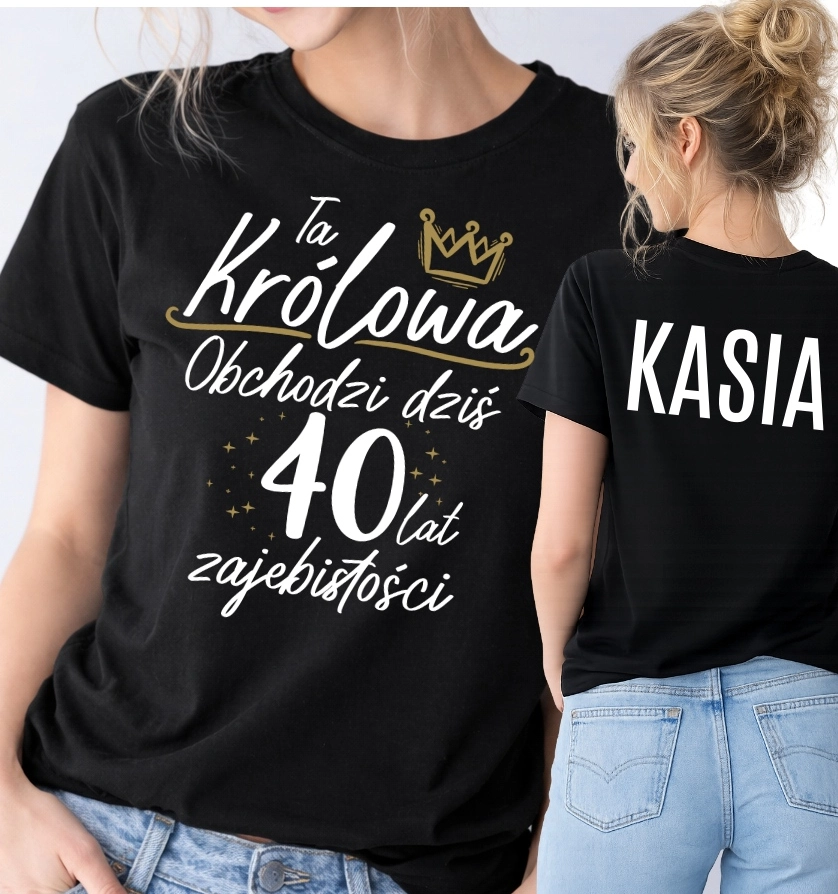 DAMSKA koszulka z imieniem na 40 urodziny - TA KRÓLOWA OBCHODZI DZIŚ 40 LAT ZAJEBITOŚCI