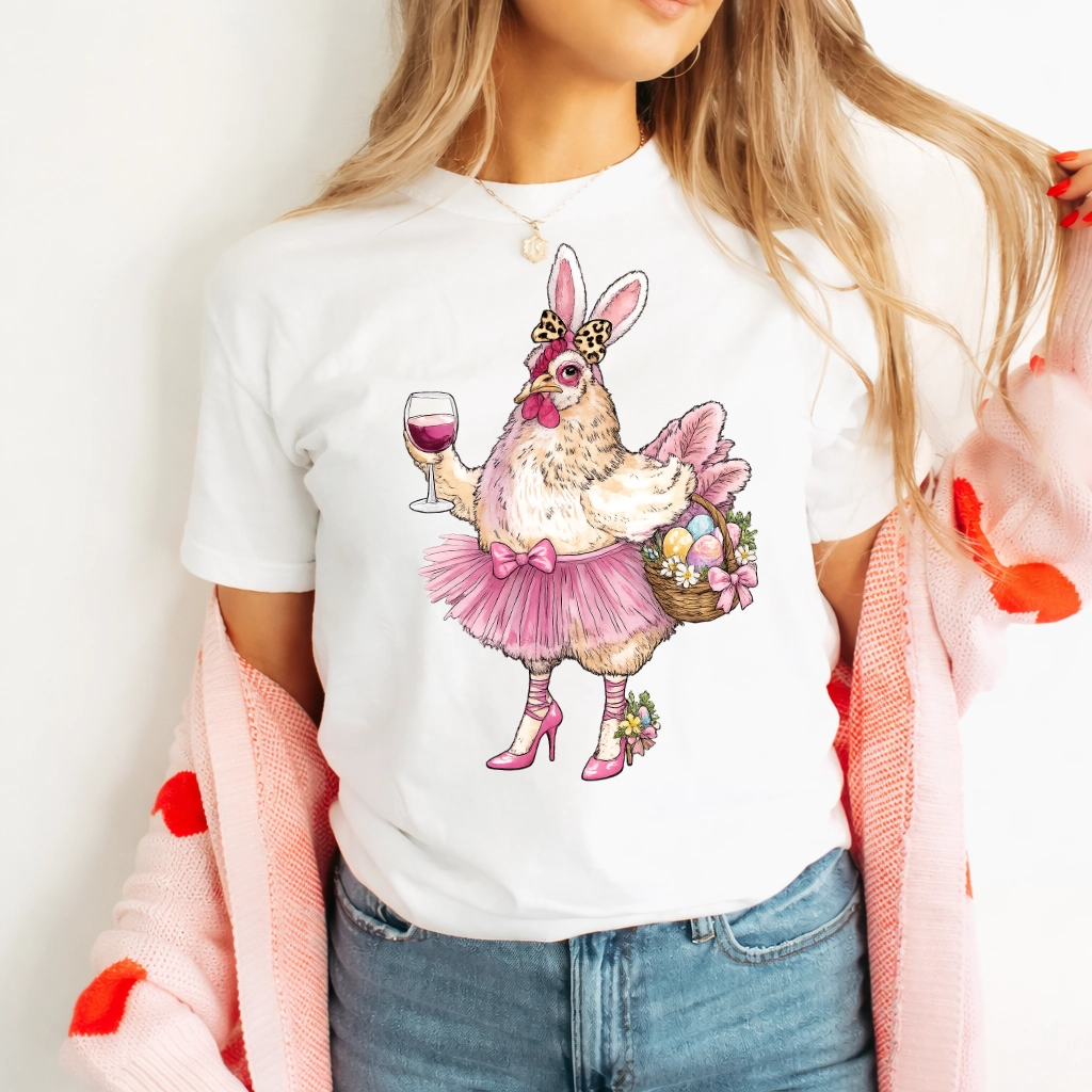 Damska biała koszulka wielkanocna z kurą