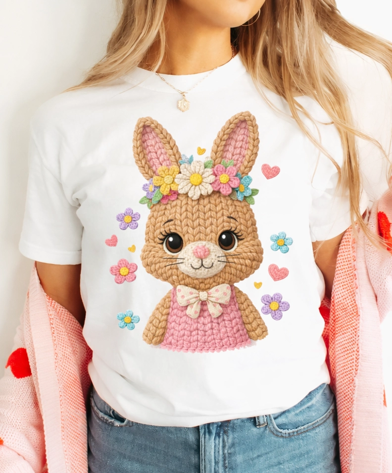 Damska biała koszulka wielkanocna z zajączkiem