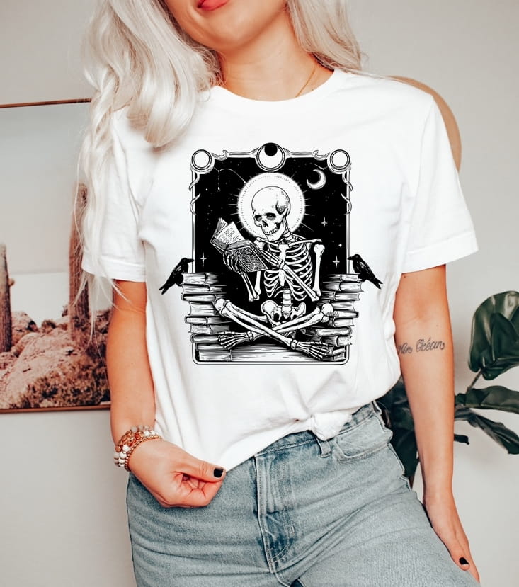Damska biała koszulka z nadrukiem szkielet