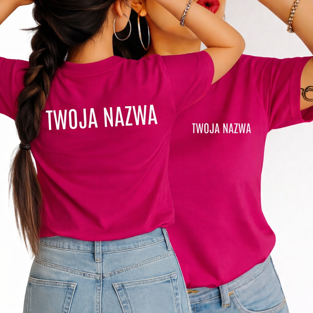 Damska fuksjowa koszulka reklamowa z nazwą firmy
