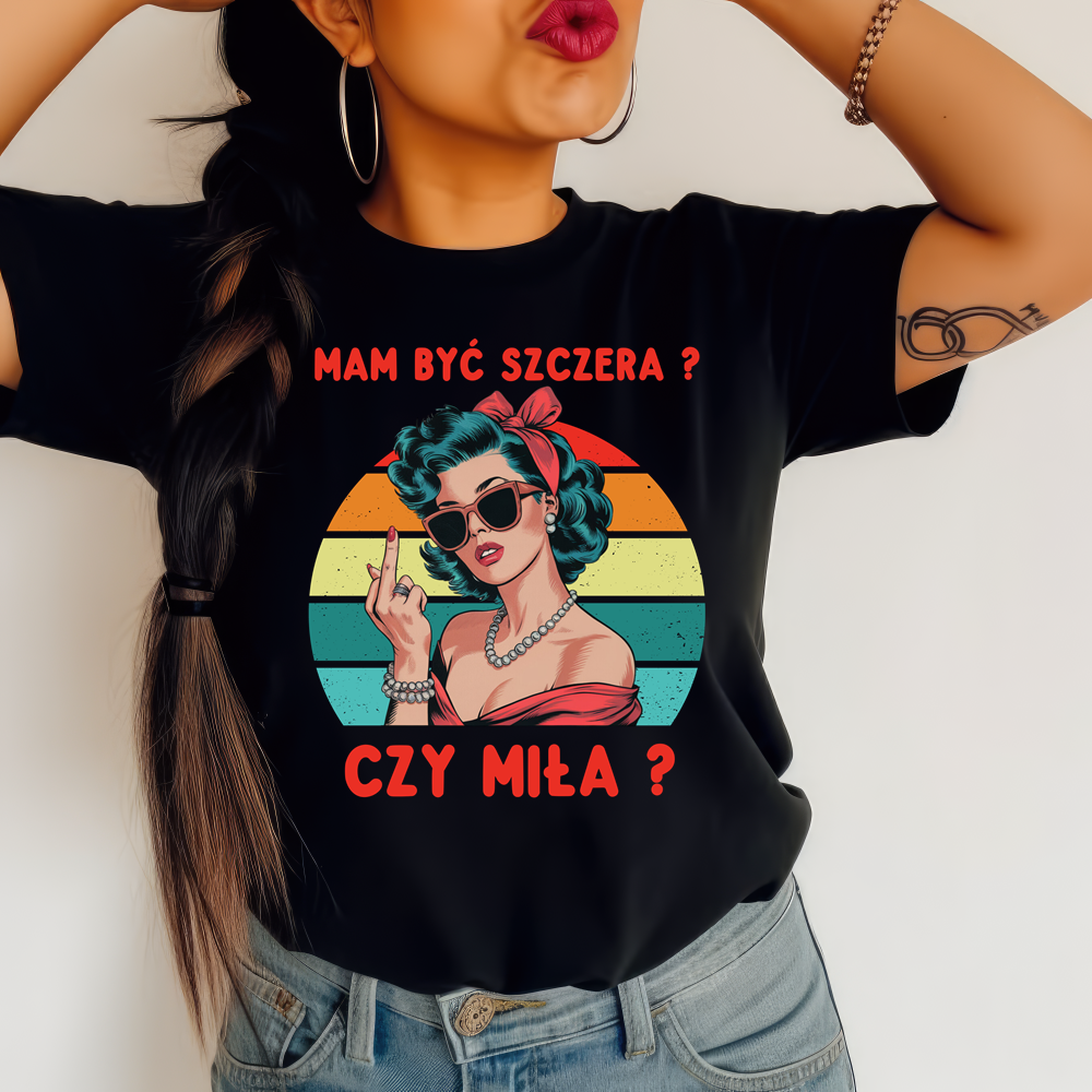 Damska koszulka NA PREZENT MAM BYĆ SZCZERA CZY MIŁA ?