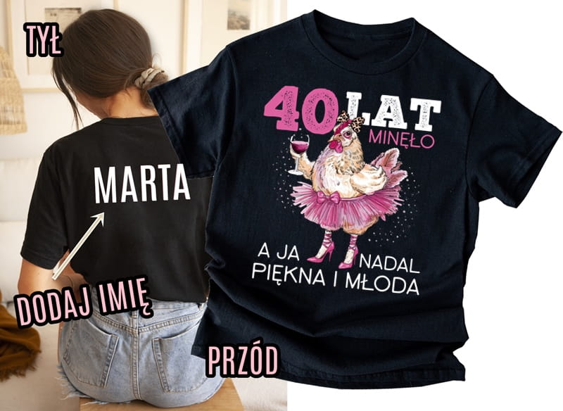 Damska koszulka na 40 urodziny z imieniem na plecach
