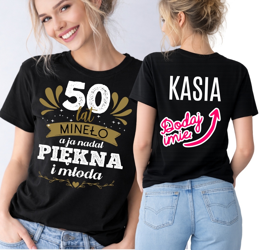 Damska koszulka na 50 urodziny - 50 LAT MINĘŁO A JA NADAL PIĘKNA I MŁODA