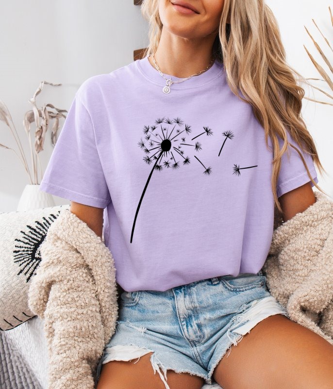 Fiołkowa koszulka z nadrukiem dmuchawca