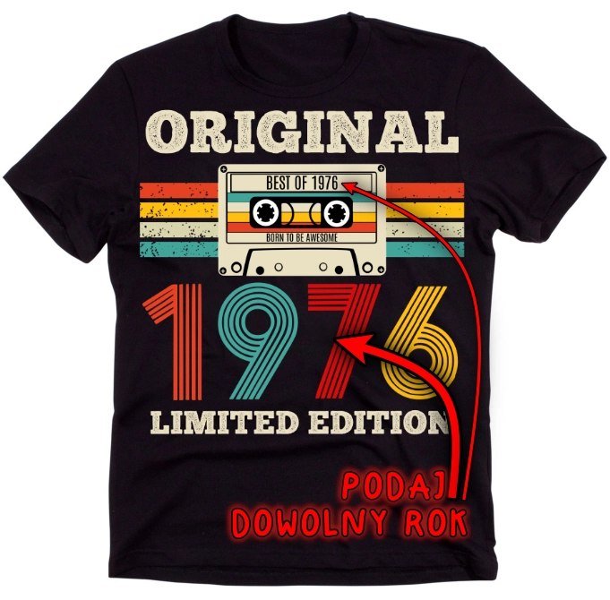 Wyjątkowa koszulka urodzinowa z możliwością personalizacji roku urodzenia, stworzona jako oryginalny i osobisty prezent. Dzięki opcji dodania własnego roku, koszulka staje się niepowtarzalną pamiątką, która podkreśla charakter i historię obdarowanej osoby.