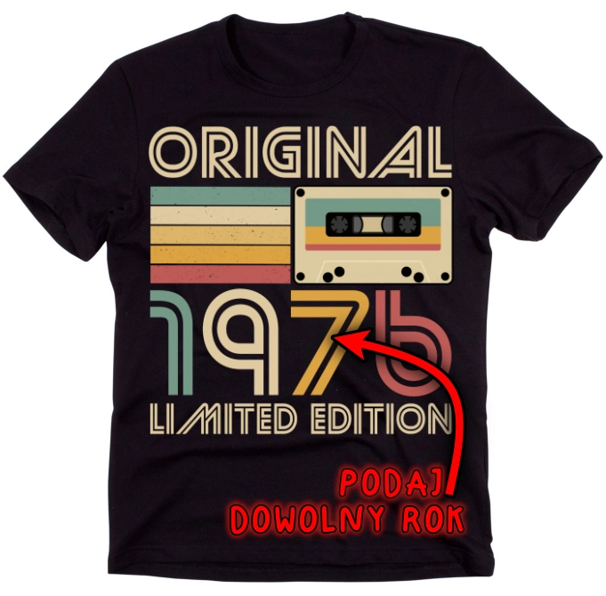 Wyjątkowa koszulka urodzinowa z możliwością personalizacji roku urodzenia, stworzona jako oryginalny i osobisty prezent. Dzięki opcji dodania własnego roku, koszulka staje się niepowtarzalną pamiątką, która podkreśla charakter i historię obdarowanej osoby.