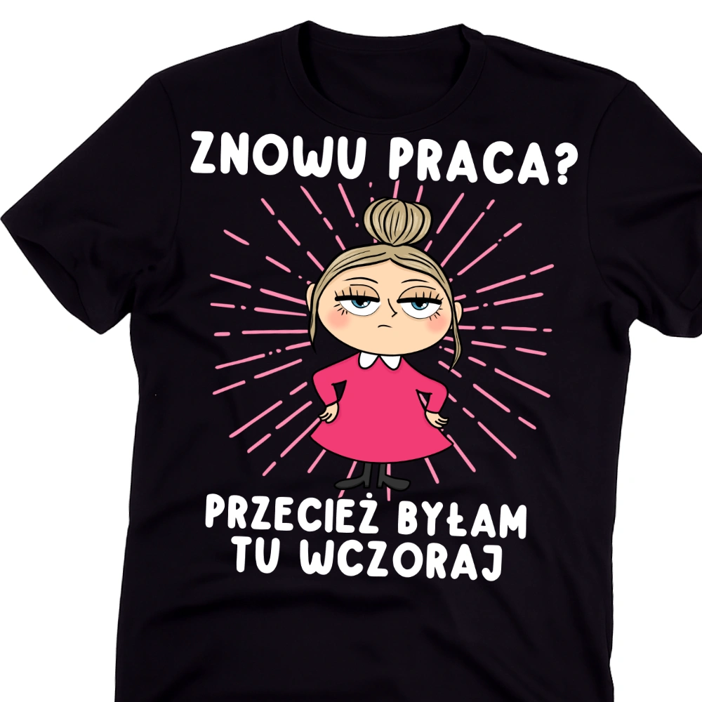 Koszulka „Znowu praca? Przecież byłam tu wczoraj” – idealny prezent na Dzień Kobiet