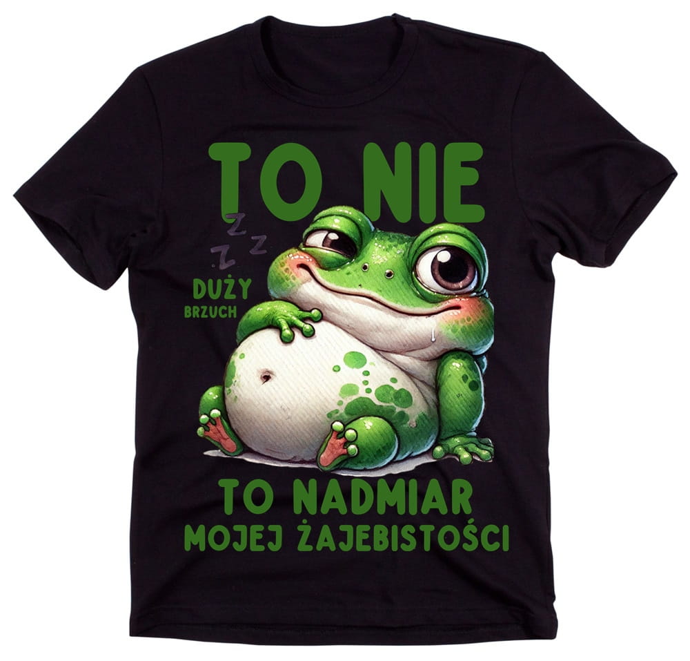Zaskocz bliską osobę tą oryginalną i zabawną koszulką, która mówi sama za siebie. Napis "TO NIE DUŻY BRZUCH, TO NADMIAR MOJEJ ZAJEBISTOŚCI" to doskonały sposób na podkreślenie dystansu do siebie i pozytywnej energii.