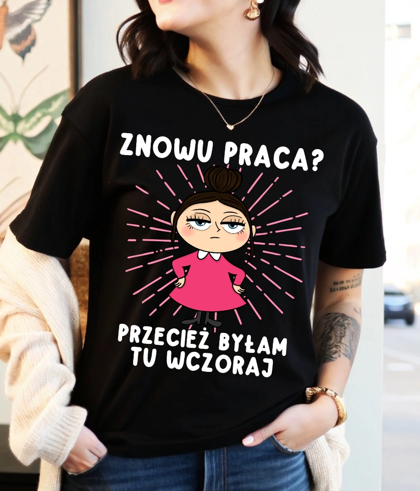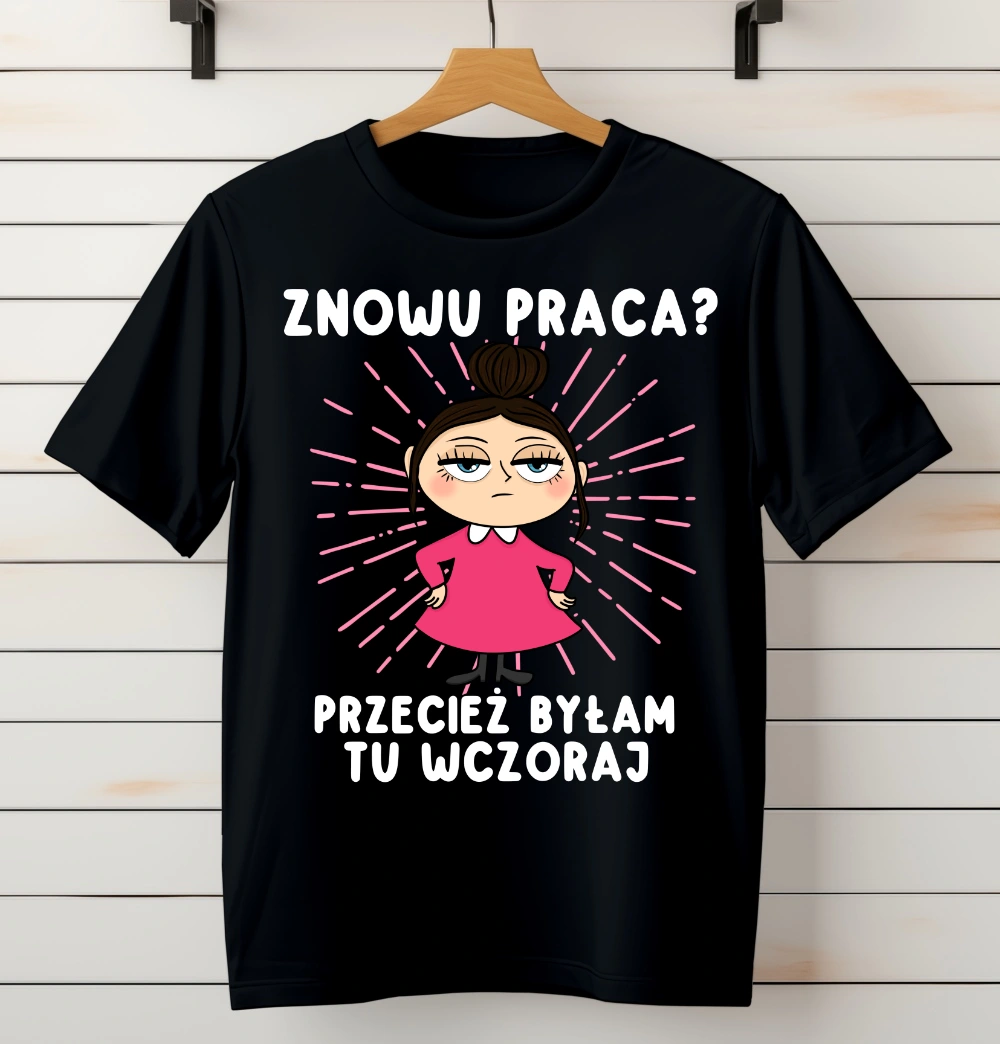 Koszulka czarna z nadrukiem "Znowu praca przecież byłam tu wczoraj''