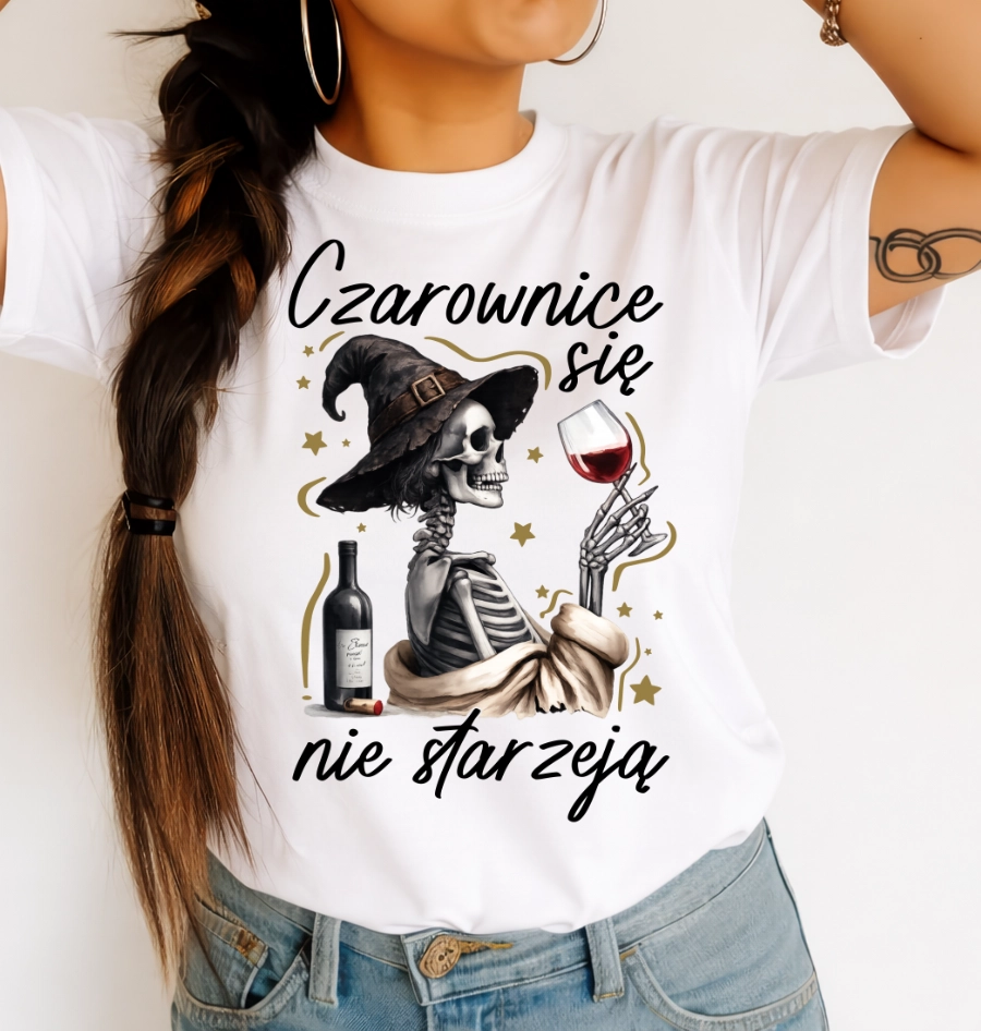 Koszulka damska na prezent dla koleżanki na urodziny - CZAROWNICE SIE NIE STARZEJĄ (