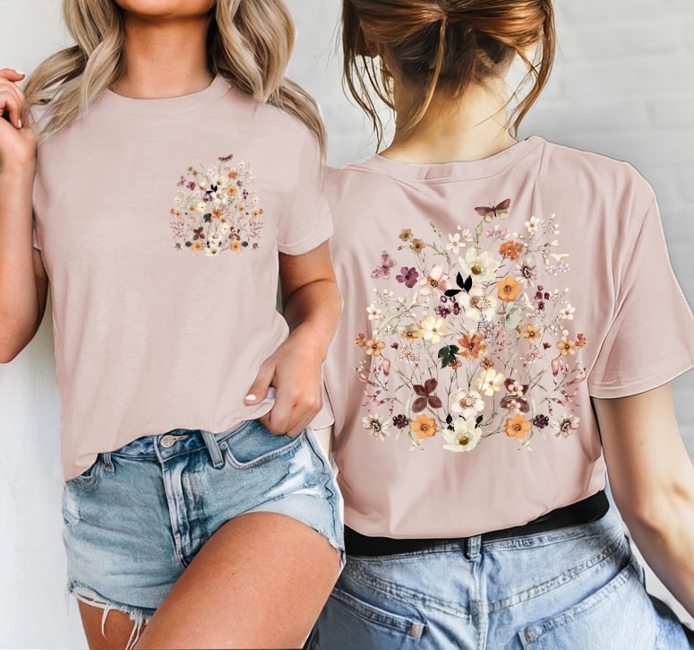 Koszulka damska w kwiaty - kolor koszulki pudrowy róż - wzór kwiaty103