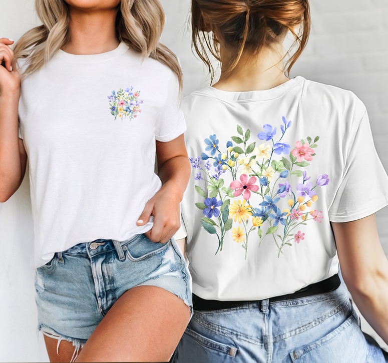 Koszulka damska w kwiaty - wzór kwiatki7T-shirt damski o modnym kroju. Rękawki proste.
