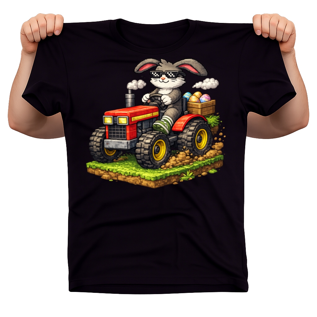 Koszulka dla chłopca na Wielkanoc z zającem na traktorze