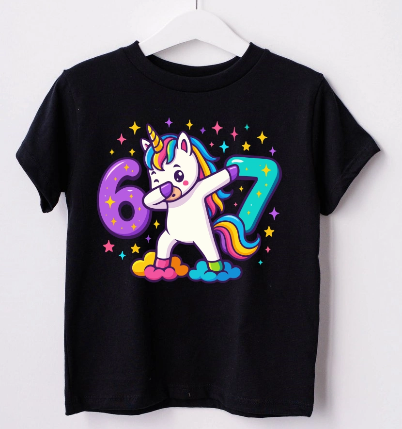 Koszulka dla dziecka z modnym motywem SIX SEVEN ORAZ UNICORNEM