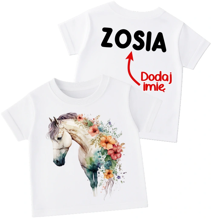 Koszulka dla dziewczynki z koniem oraz imieniem dziecka na plecach