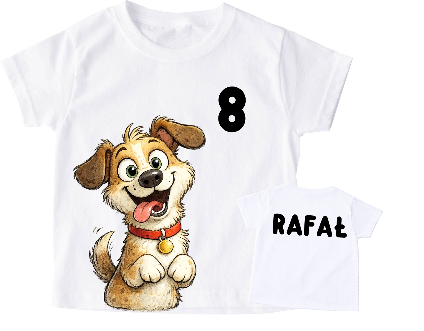 Koszulka z pieskiem dla dziecka na 8 urodziny z imieniem