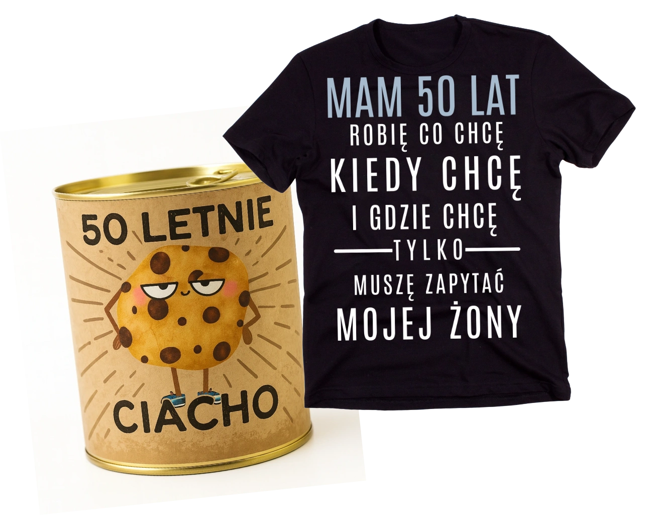 Męska koszulka na 50 urodziny mam 50 LAT ROBIĘ CO CHCĘ - gotowy zestaw prezentowy na 50 zapakowany w puszkę