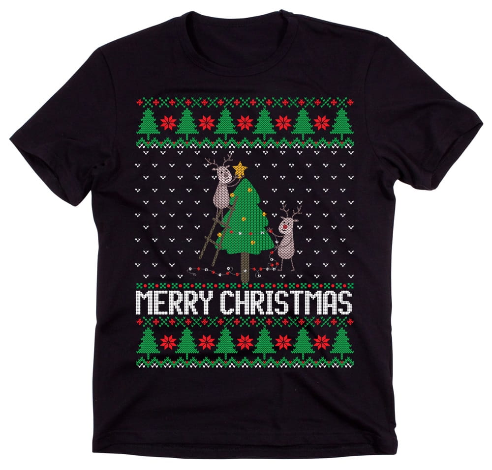 Koszulka ozdobiona jest świąteczną grafiką, która łączy klasyczne elementy Bożego Narodzenia – jak choinki, śnieżynki czy renifery – z zabawnym motywem, który z pewnością wywoła uśmiech. Idealna na prezent dla siebie lub bliskiego, który lubi podejść do świąt na luzie!