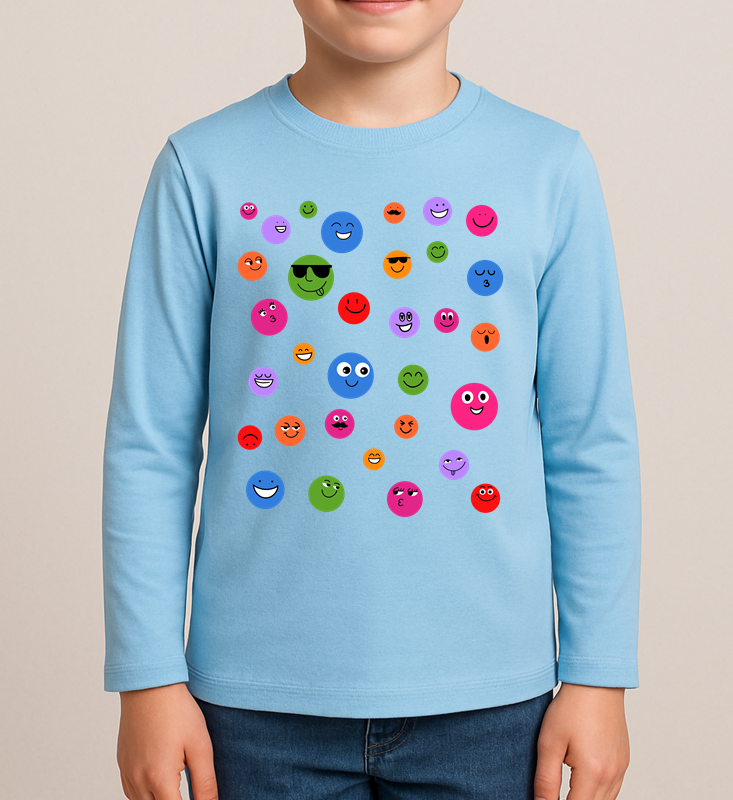 Niebieska koszulka z długim rękawkiem na Dzień Kropki dla chłopczyka - wzór kropki z uśmieszkami