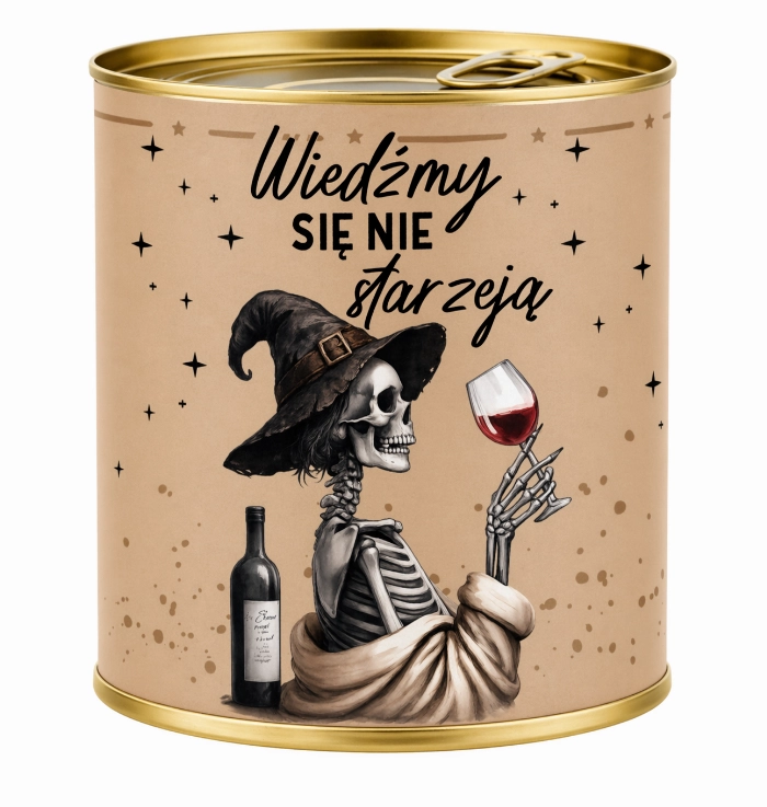 Pakowanie koszulki w puszkę na urodziny ''Wiedźmy się nie starzeją''