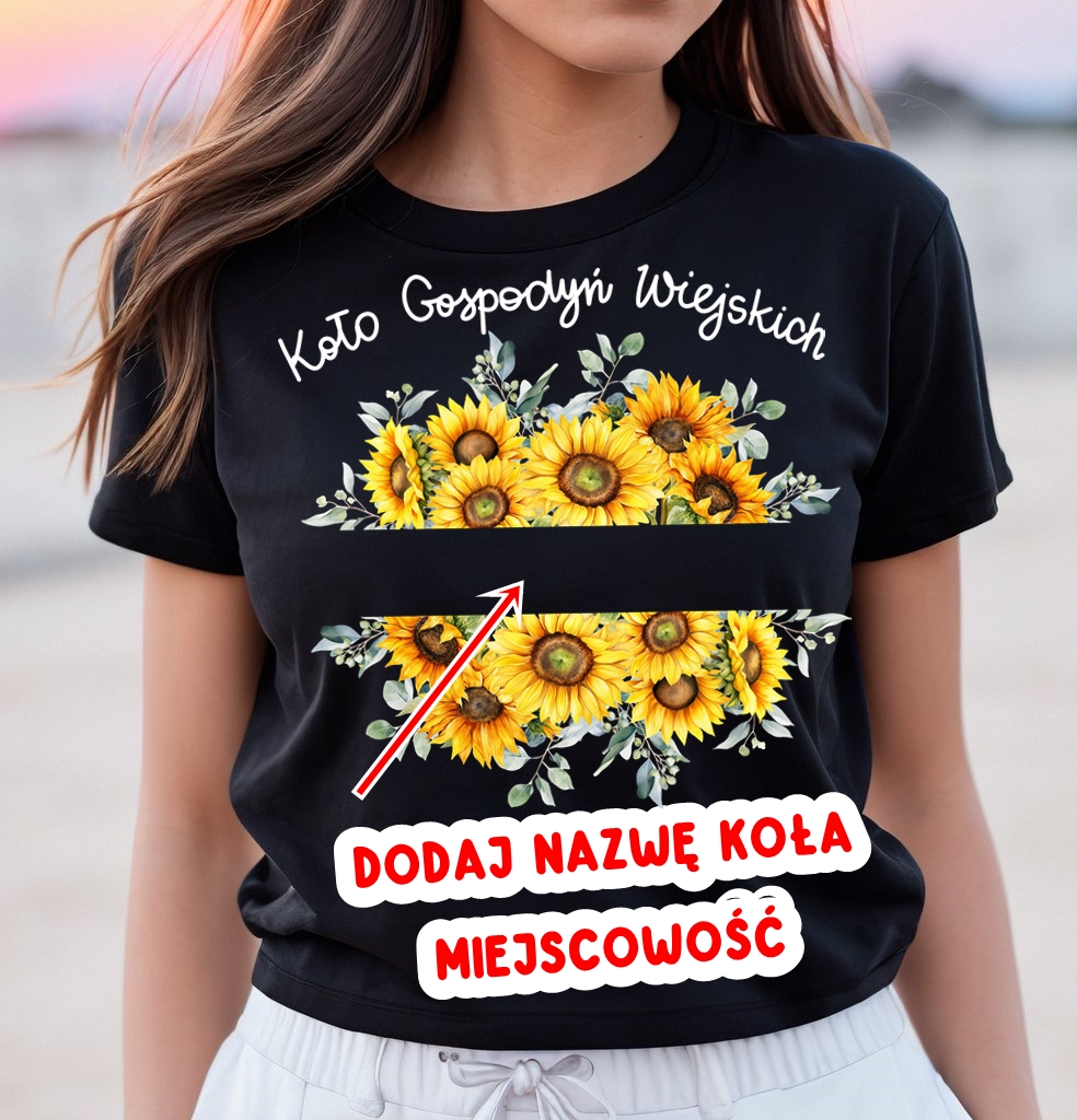 Personalizowana Koszulka dla koła gospodyń wiejskich ze słonecznikami dodaj nazwą koła /miejscowość wzór folk15