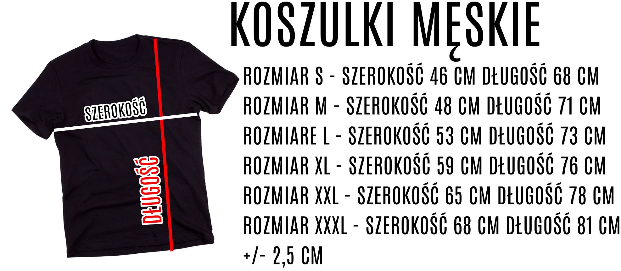 W przypadku koszulek męskich nadruk wykonywany jest na sercu - mniejsze logo na sercu. Tak jak na zdjęciu z męską koszulką.