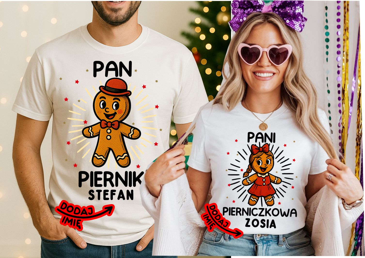 Personalizowany zestaw koszulek PAN PIERNIK PANI PIERNICZKOWA Z IMIONAMI