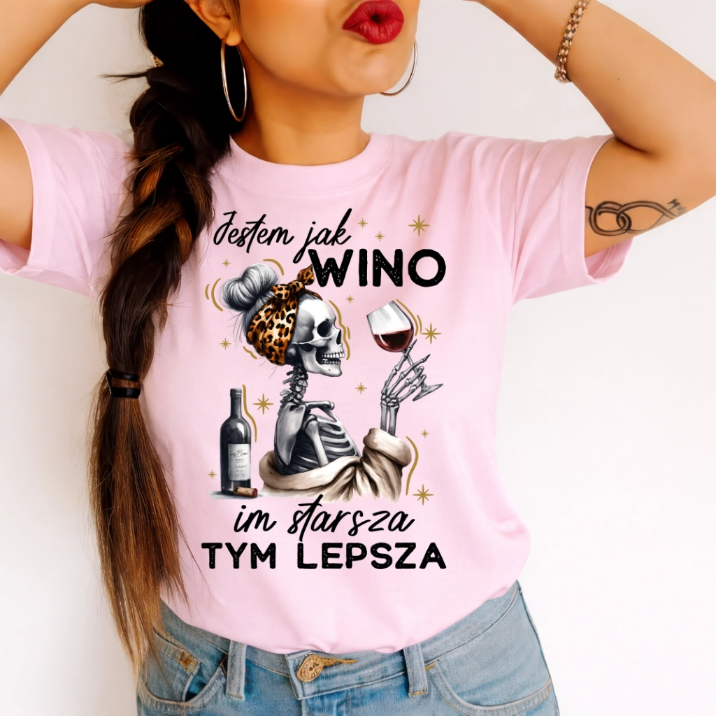 Różowa koszulka dla koleżanki na urodziny - jestem jak wino im starsza tym lepsza