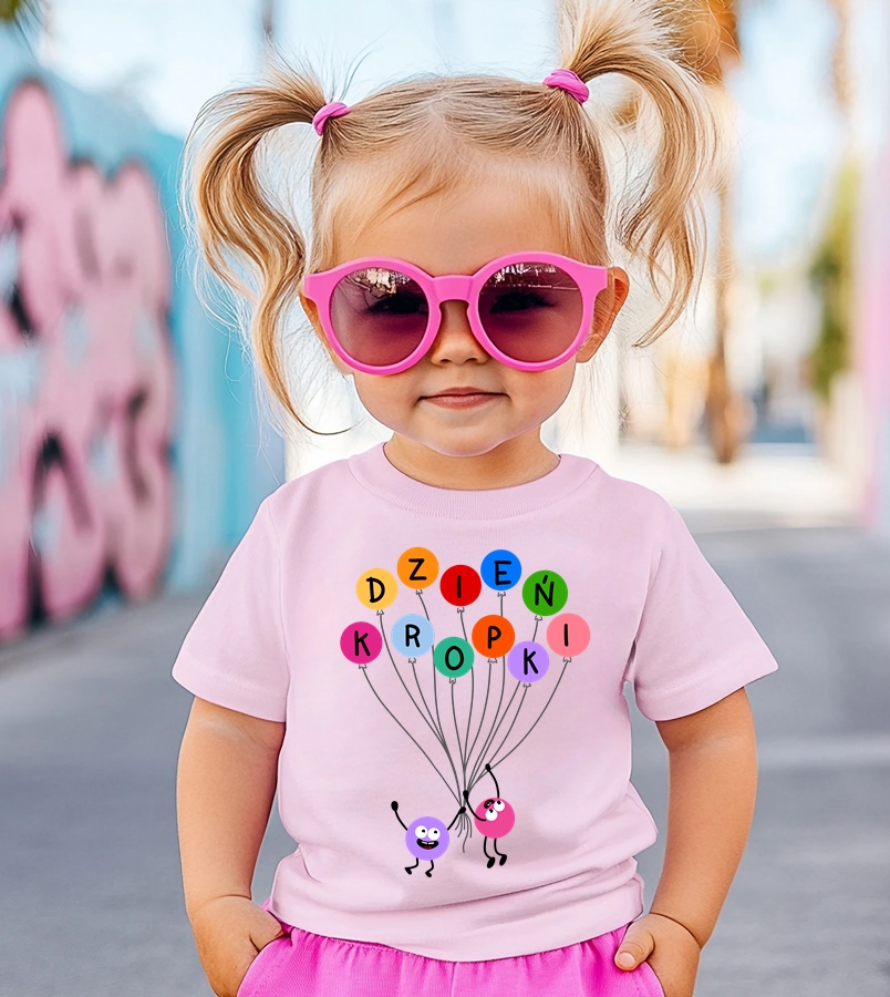 Różowa koszulka w kropki dla dziewczynki na dzień kropki -wzór kropki33