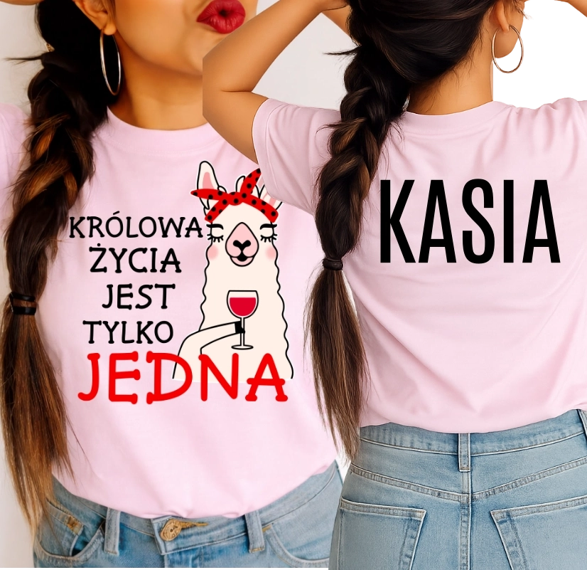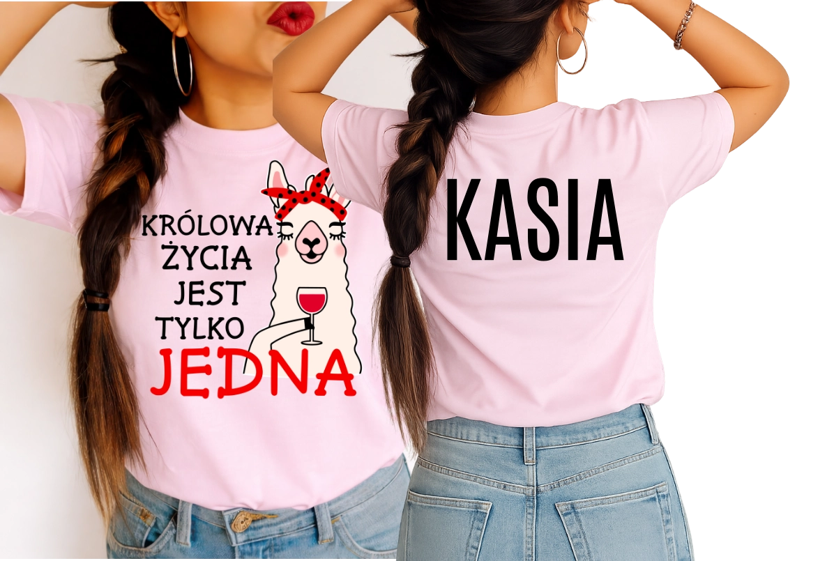 Różowa koszulka z imieniem dla koleżanki - KRÓLOWA ŻYCIA JESY TYLKO JEDNA
