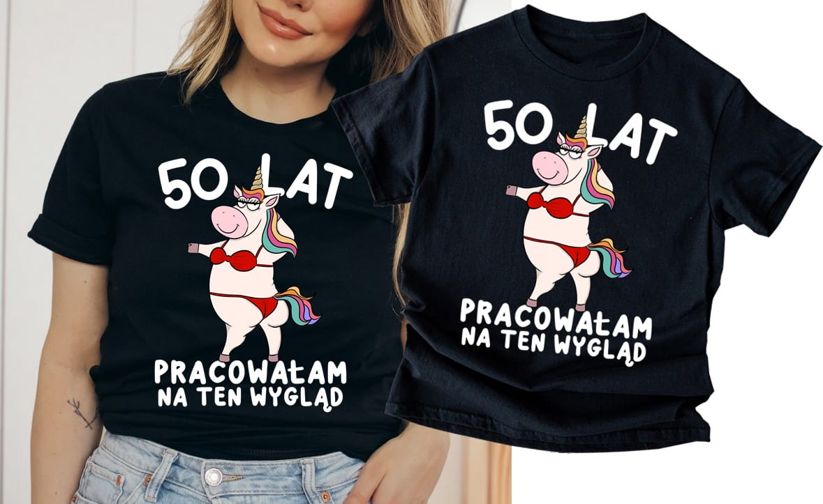 ŚMIESZNA Koszulka na 50 urodziny dla koleżanki - 50 LAT PRACOWAŁAM NA TEN WYGLĄD