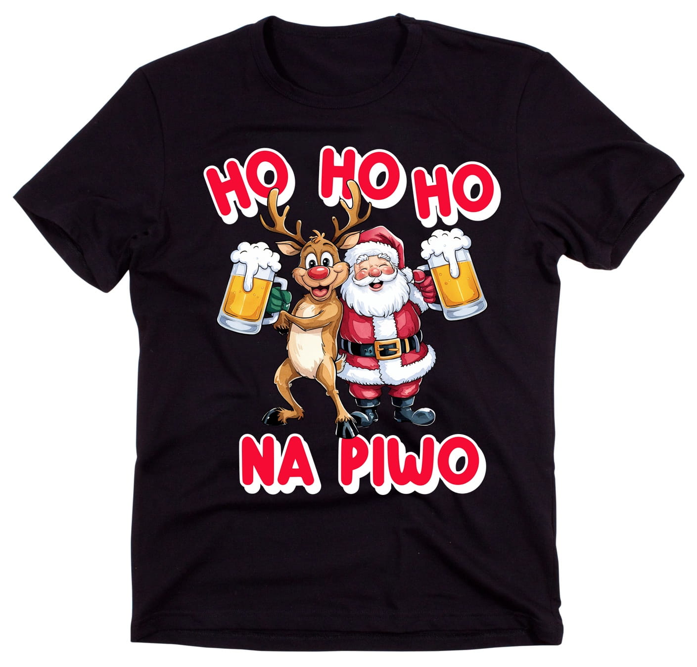 Koszulka ozdobiona jest świąteczną grafiką, która łączy klasyczne elementy Bożego Narodzenia – jak choinki, śnieżynki czy renifery – z zabawnym motywem, który z pewnością wywoła uśmiech. Idealna na prezent dla siebie lub bliskiego, który lubi podejść do świąt na luzie!