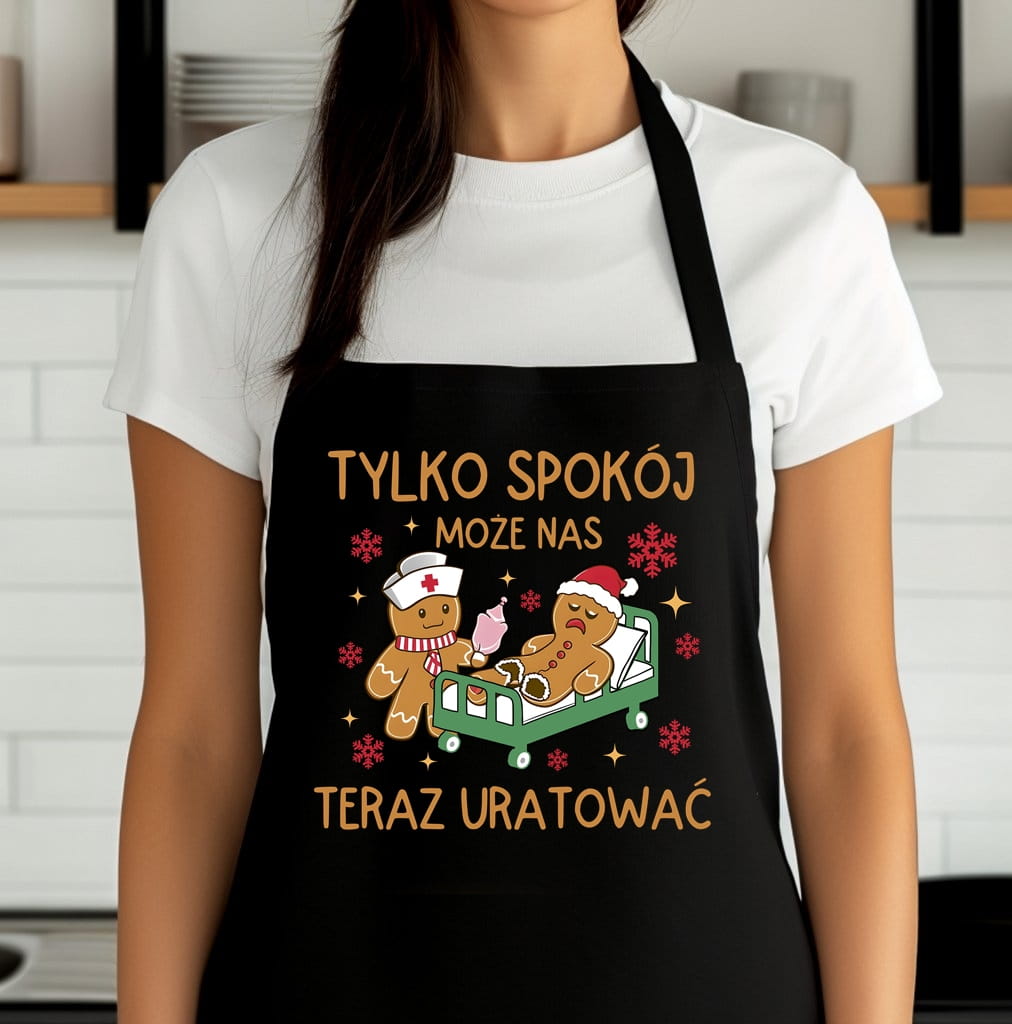 ŚMIESZNY ŚWIĄTECZNY FARTUCH - TYLKO SPOKÓJ MOŻE NAS URATOWAĆ