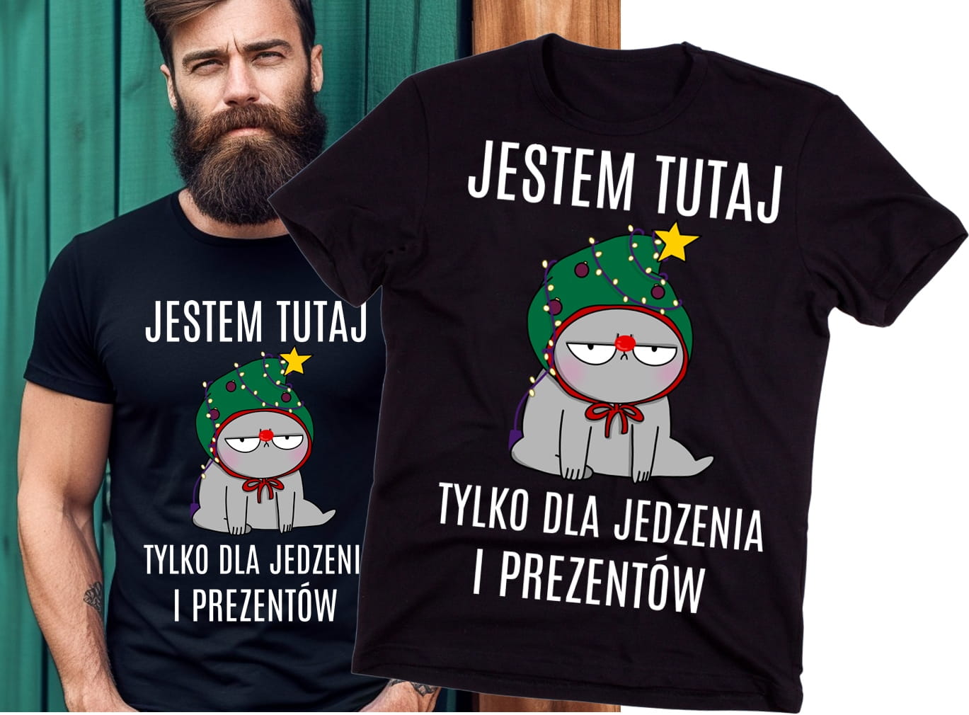Śmieszna koszulka na święta Jestem tu tylko dla jedzenia i prezentów