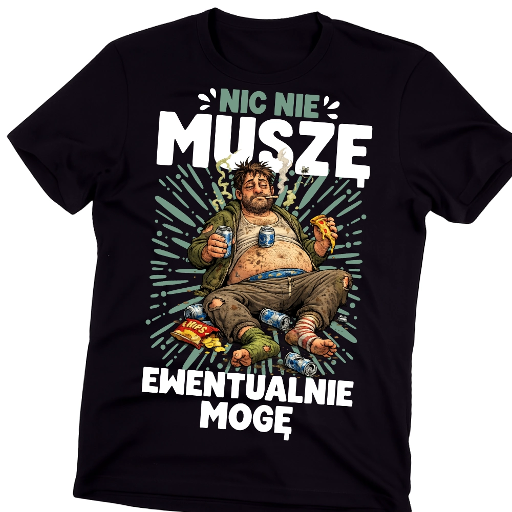 Śmieszna męska koszulka NIC NIE MUSZĘ EWENTUALNIE MOGĘ