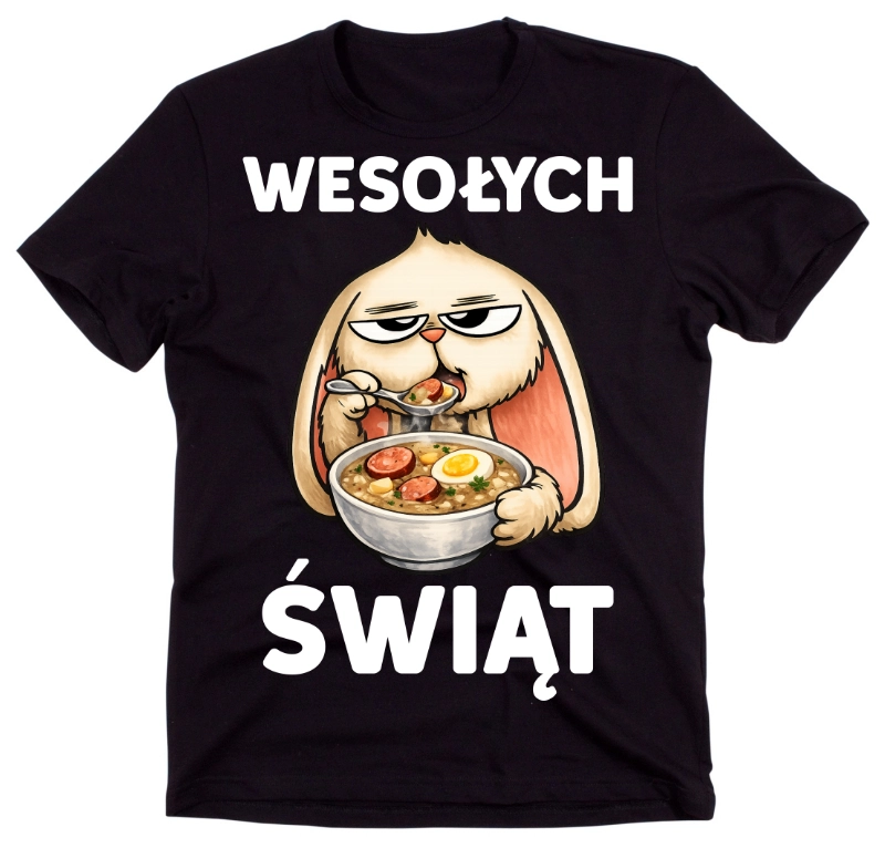 Śmieszna męska koszulka na Wielkanoc - WESOŁYCH ŚWIĄT Z KRÓLIKIEM JEDZĄCYM żurek