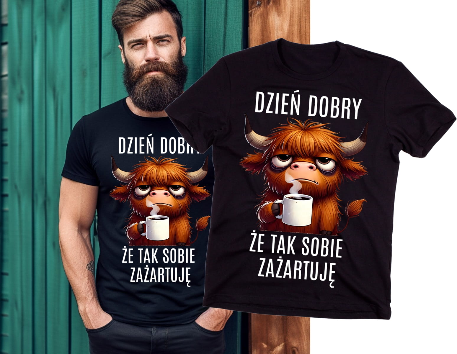 Śmieszna męska koszulka z napisem - DZIEŃ DOBRY ŻE TAK SOBIE ZAŻARTUJĘ